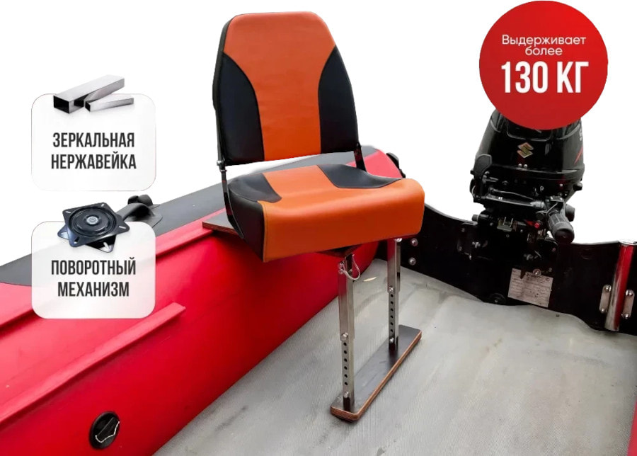 Кресло мягкое в лодку ПВХ полный комплект с опорой укороченной (нержавеющая сталь), Кокпит - это полностью собранный комплект для Вашей лодки с мягким креслом с формованным ППУ из морского винила или Оксфорд 600D PU (в зависимости от расцветки) и рамой укороченной без занижения из зеркальной нержавейки AISI316. Данный комплект подходит для небольших лодок с шириной кокпита 60-76 см.