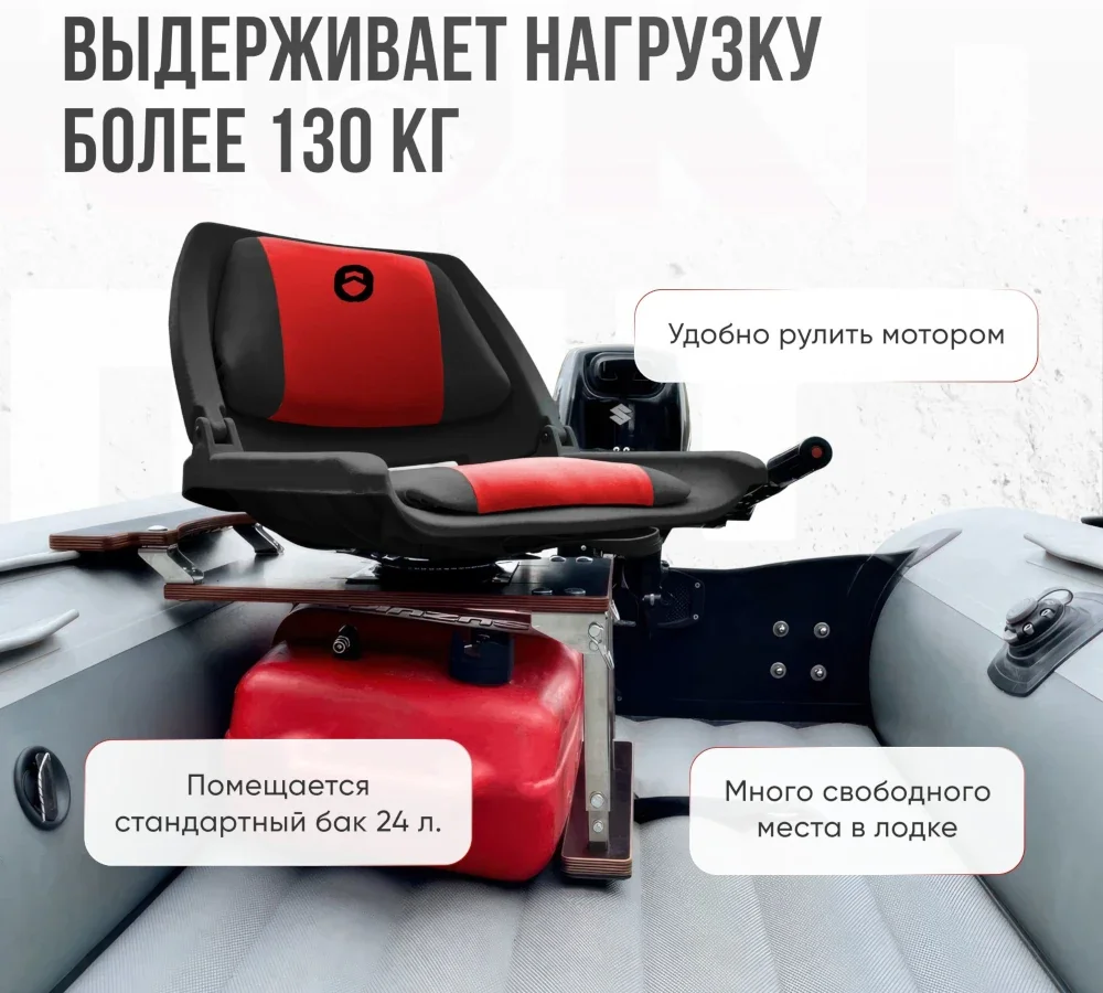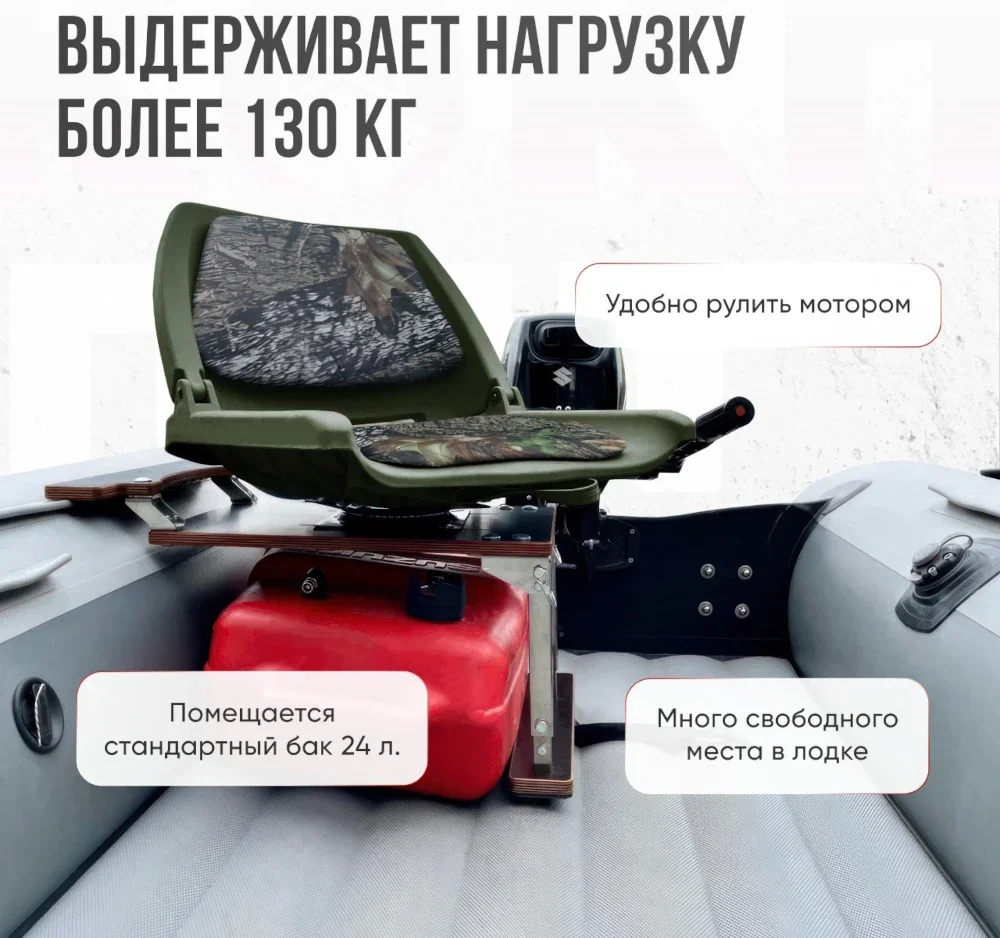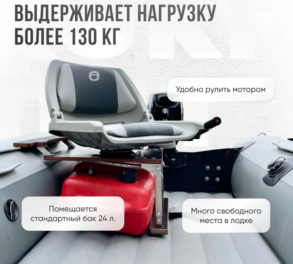 - Под стойку помещается стандартный бак 24 литра (Yamaha, Tohatsu, Suzuki и аналоги).