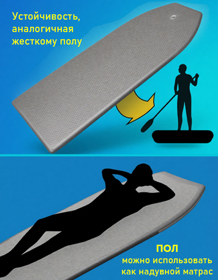 Лодка со съемным надувным дном AirDeck сочетает в себе комфорт и устойчивость жёсткого пайола, удобство транспортировки и малый вес надувной конструкции. Дно может использоваться в качестве матраса.