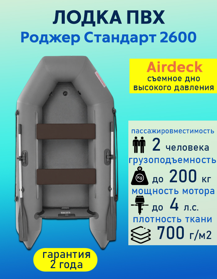 Надувная лодка ПВХ Роджер Стандарт 2600, Airdeck