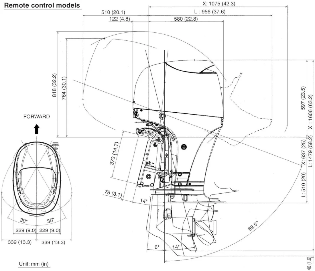 Вес мотора: 156 кг. (DF70ATL) / 160 кг. (DF70ATX)
